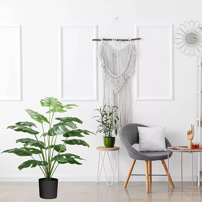 As plantas são essenciais no estilo boho! Mesmo em espaços pequenos, dá para usar vasos suspensos, cestos de palha ou vasos artesanais de cerâmica. Aposte em espécies como jiboia, zamioculca e costela-de-adão para dar vida ao ambiente.